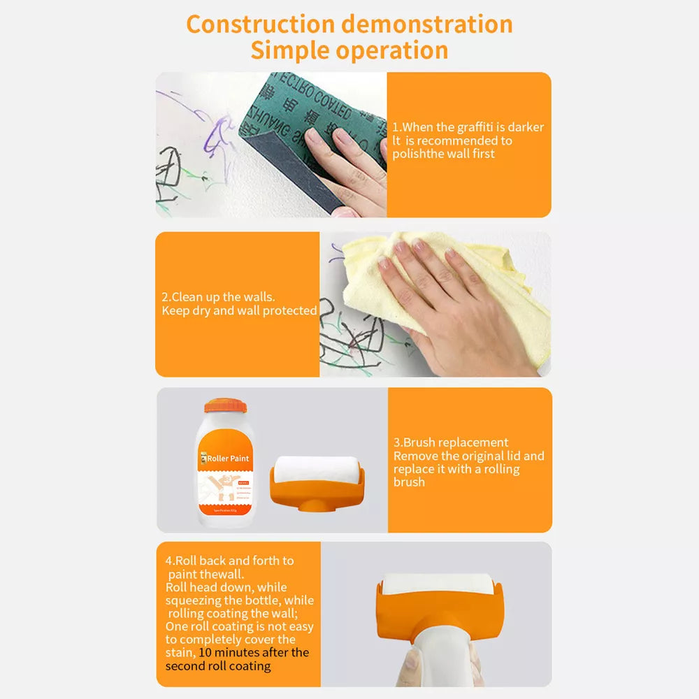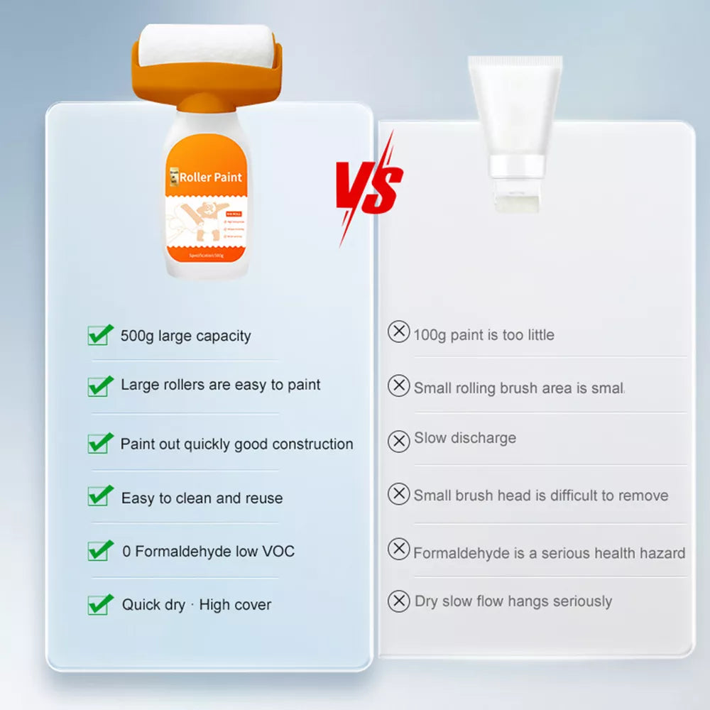The Wall Repair Roller Paint offers a range of key benefits. This specially formulated paint covers cracks, dents, and blemishes instantly, saving you time and effort compared to traditional methods. It blends flawlessly with your existing wall color, ensuring a smooth and consistent finish. Easy to apply with the included roller, this paint is perfect for small touch-ups or larger repair jobs. The durable, long-lasting formula ensures that your repairs will withstand the test of time, making it a smart, cost-effective solution for wall maintenance.