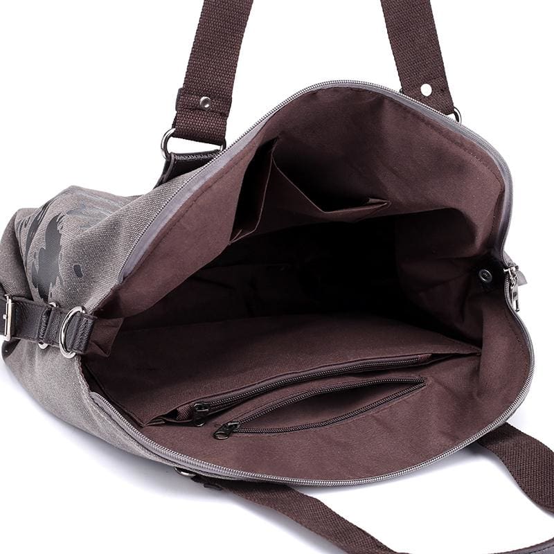 Handbags Type: Totes Main Material: CanvasShape: Box Closure Type: zipperHardness: Soft Lining Material: PolyesterPattern Type: Thread Number of Handles/Straps: ThreeMaterial: Canvas Openings way: ZipperPopular elements: Sewing Thread Hardness: SoftInternal structure: Zipper pocket | mobile phone bags | sandwich zipper bag
