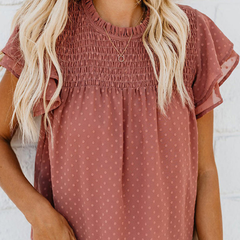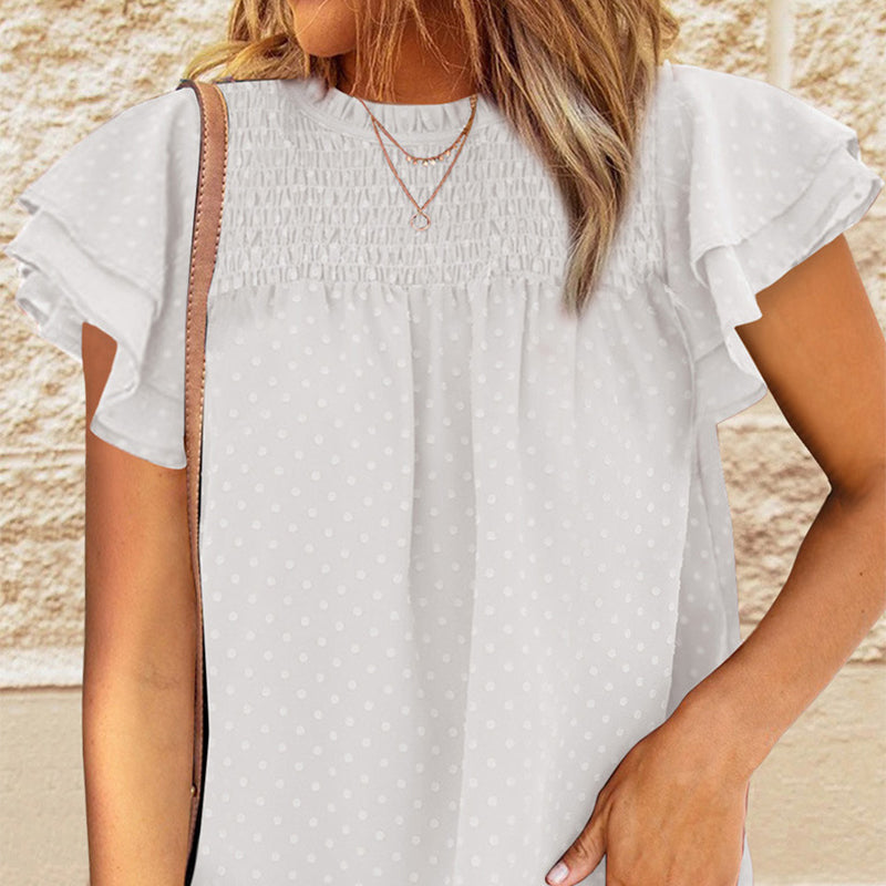 FLUTTERING RUFFLED SLEEVES- Designed with loose ruffled sleeves for comfortable movement and a flattering silhouette, this top combines femininity with breathability.