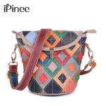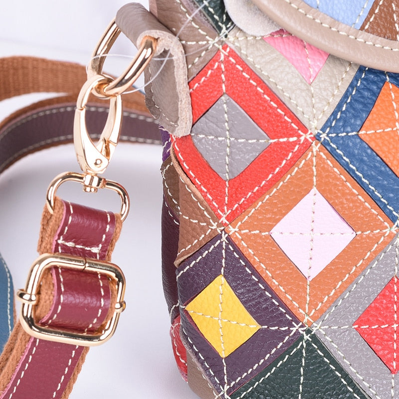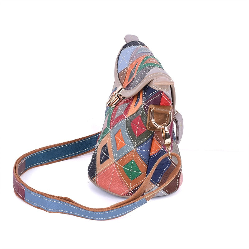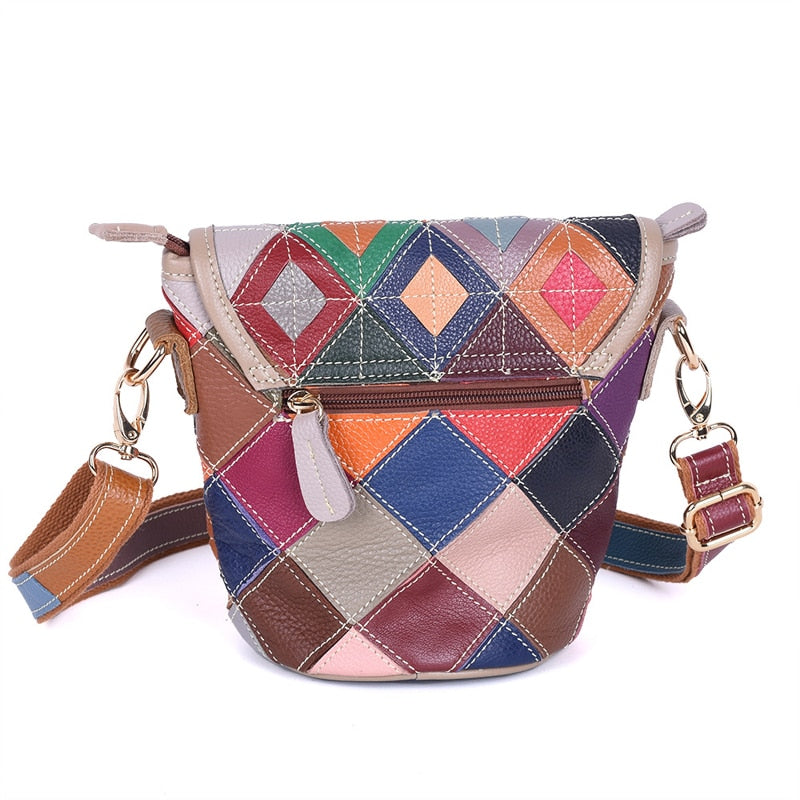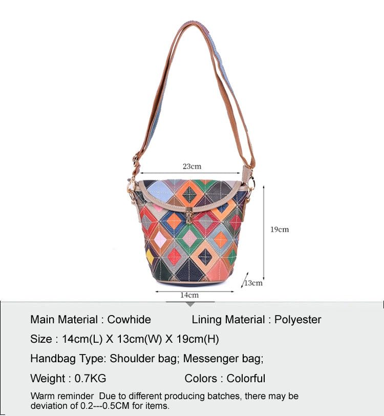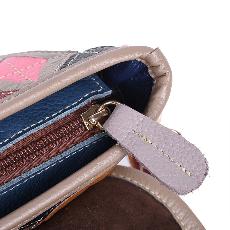 Women’s genuine leather handbag patchwork shoulder bag