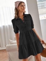 Chic Women’s Puff Sleeve Button-Up Dress for Effortless Elegance