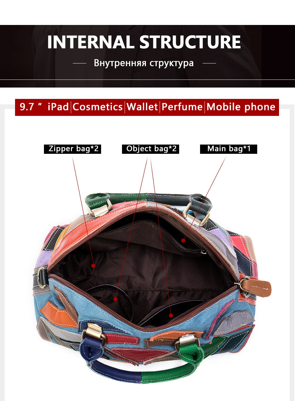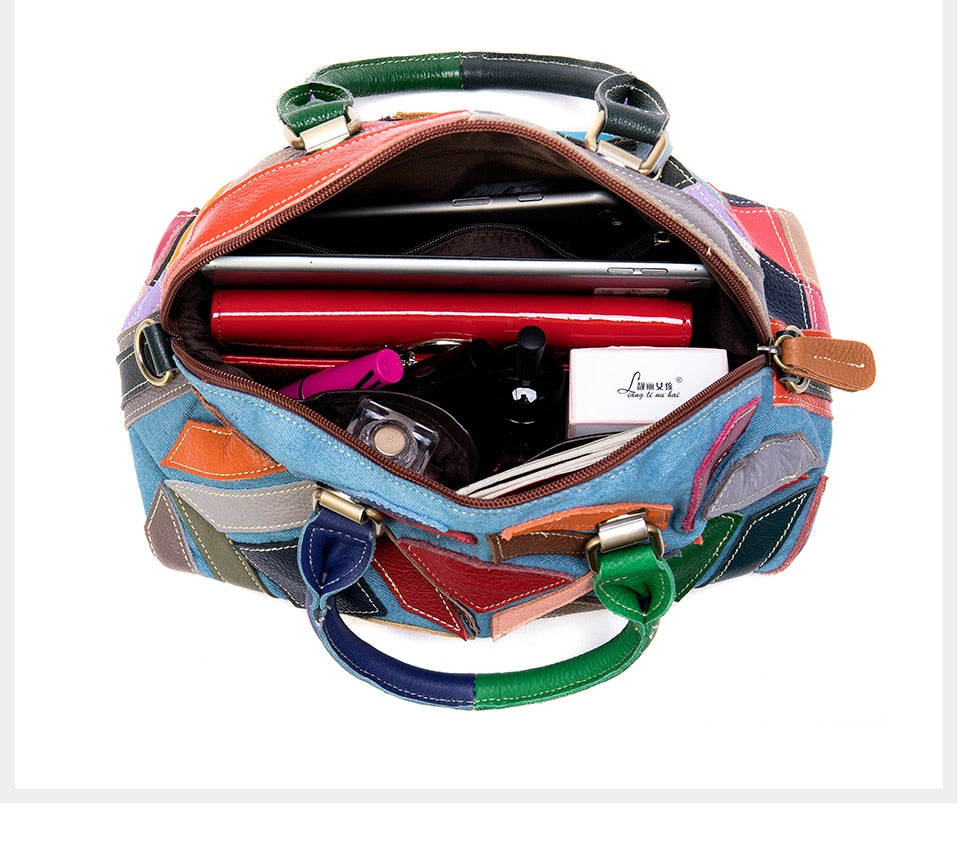 Women’s shoulder bag genuine leather designer bag patchwork