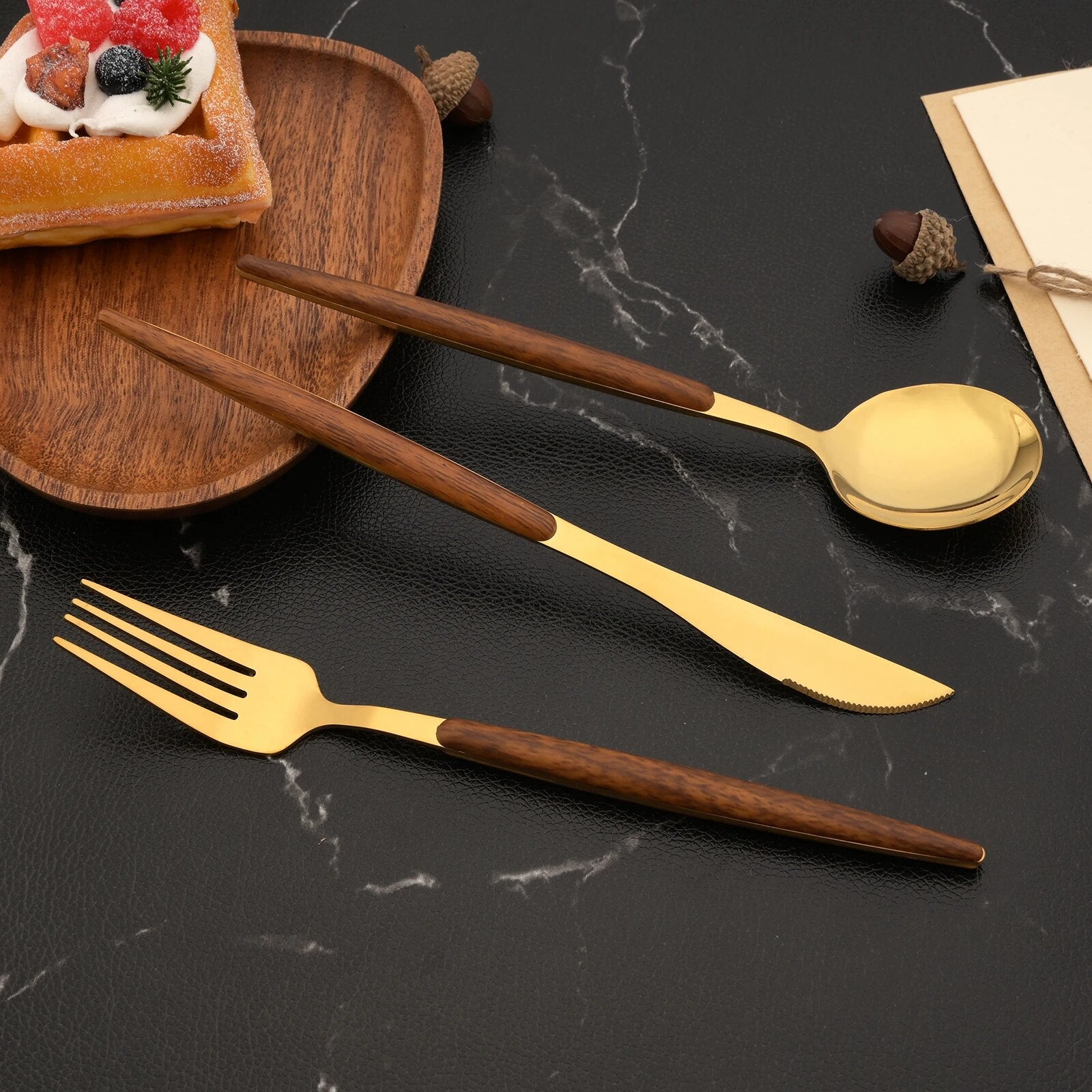 Elevate your dining experience with our Wooden Handle Cutlery Set – a timeless blend of functionality and elegance that transforms every meal into a tasteful celebration.