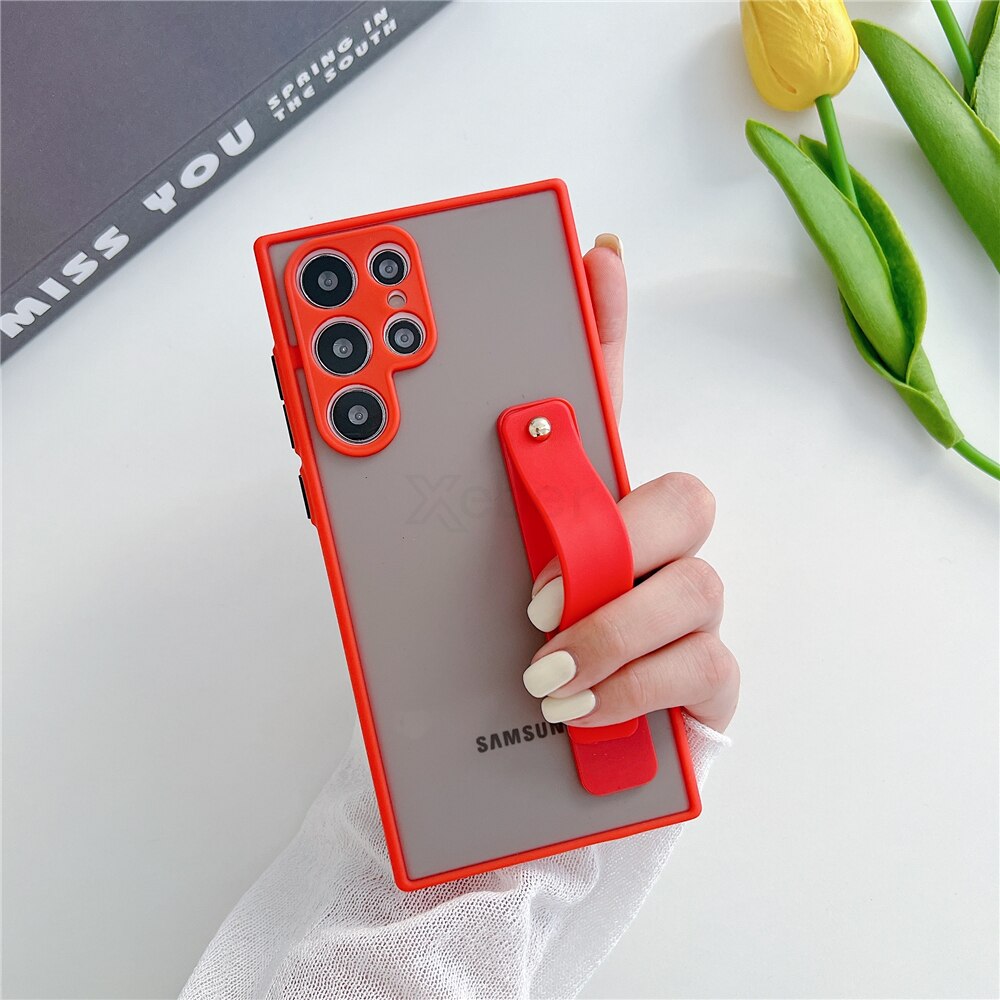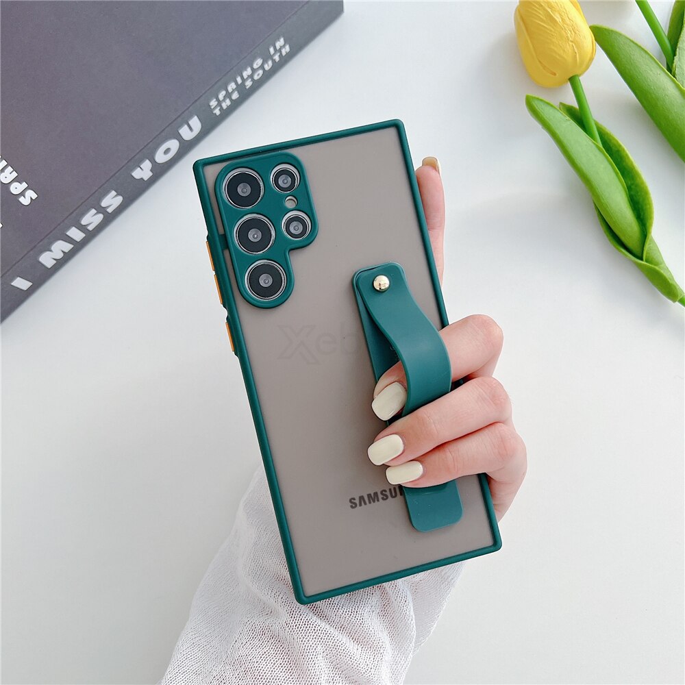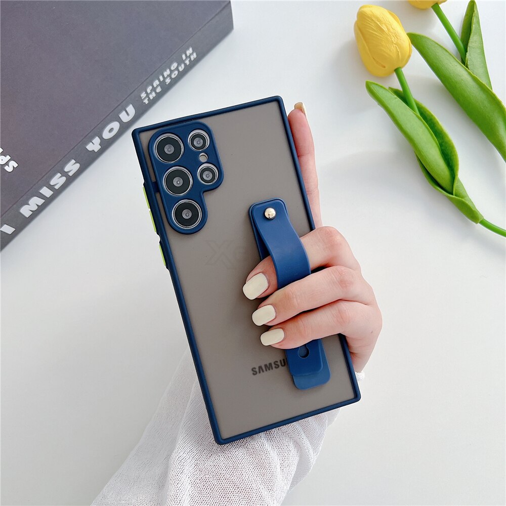 Wrist Strap Stand Clear Matte Case For Samsung S22 Series - onlinemegasale.com