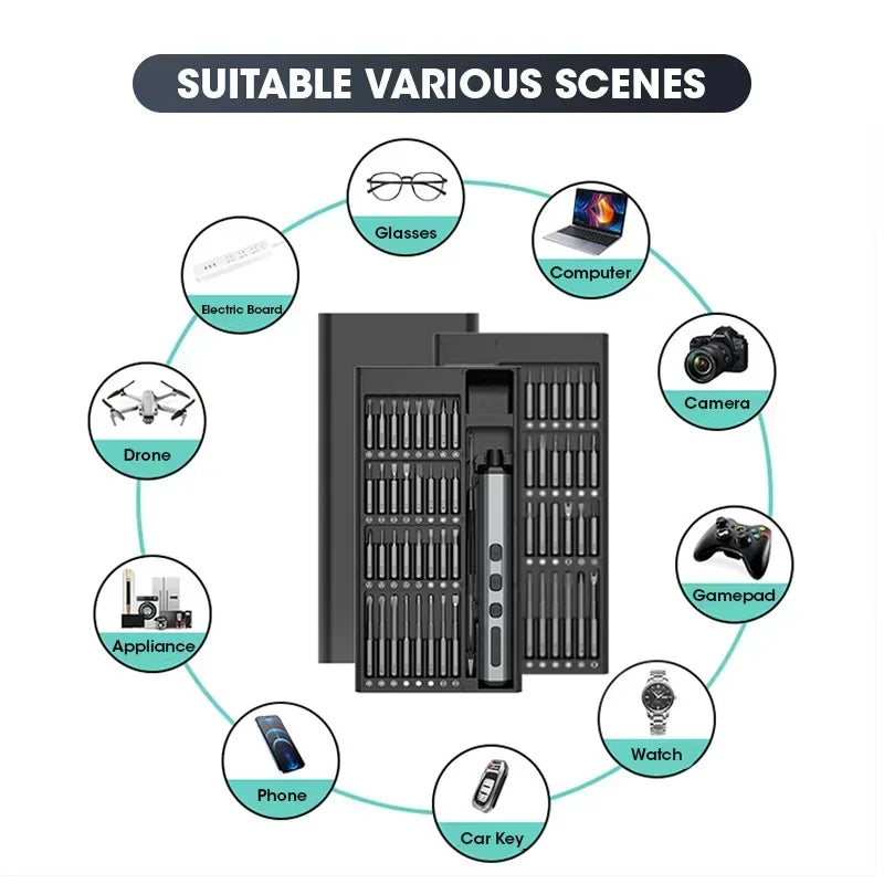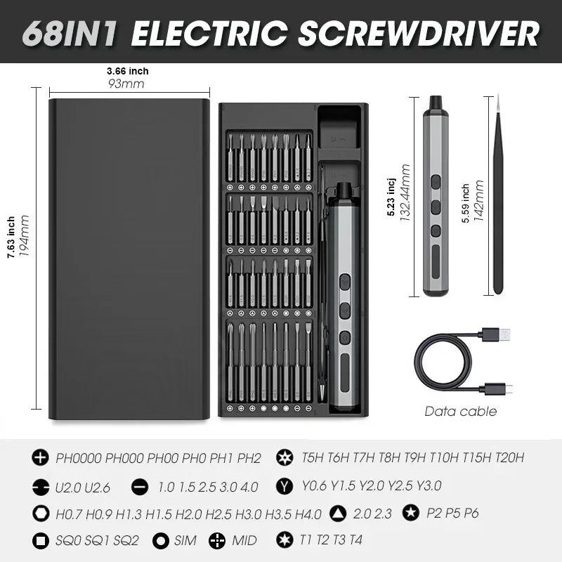 Comprehensive 68 in 1 Set: Includes a wide variety of precision magnetic bits, perfect for tasks requiring a precision electric screwdriver.