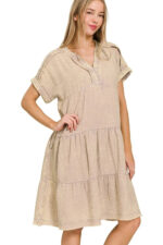 Be the first to review “Washed Double Gauze Raw Edge Notched Dress”